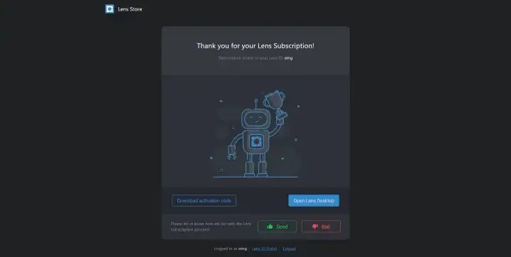 Note: From this Lens ID management page, you will also be able to create an activation code for air-gapped installation.