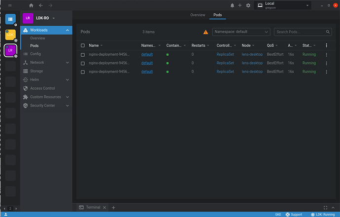 This post shows step-by-step how to set up an RBAC-limited user (via a ServiceAccount resource) from within Lens on a Lens Desktop Kube (LDK) cluster, and how to connect to the cluster as the limited-access user. This should work similarly on any cluster that you have admin privileges for.