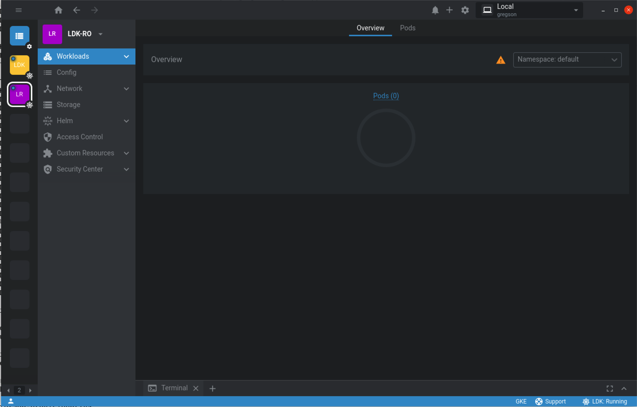 To allow an RBAC-restricted user to access this LDK cluster you need to create some kubernetes resources. In this guide we will create a ClusterRole, ClusterRoleBinding, and a ServiceAccount using Lens.