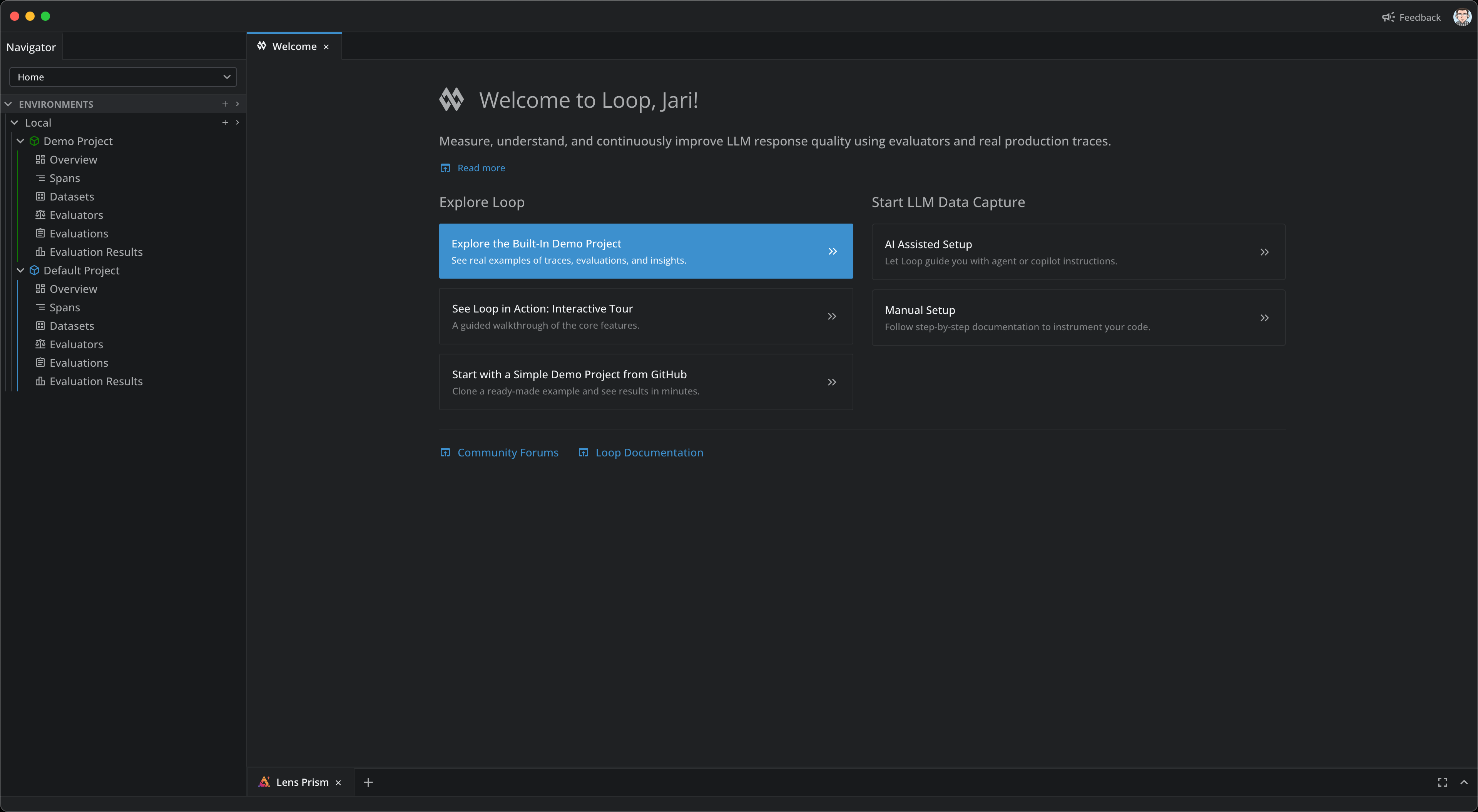 - Improved Onboarding — Redesigned welcome page with interactive demo project containing pre-seeded data and automatic navigator expansion for first-time users.
