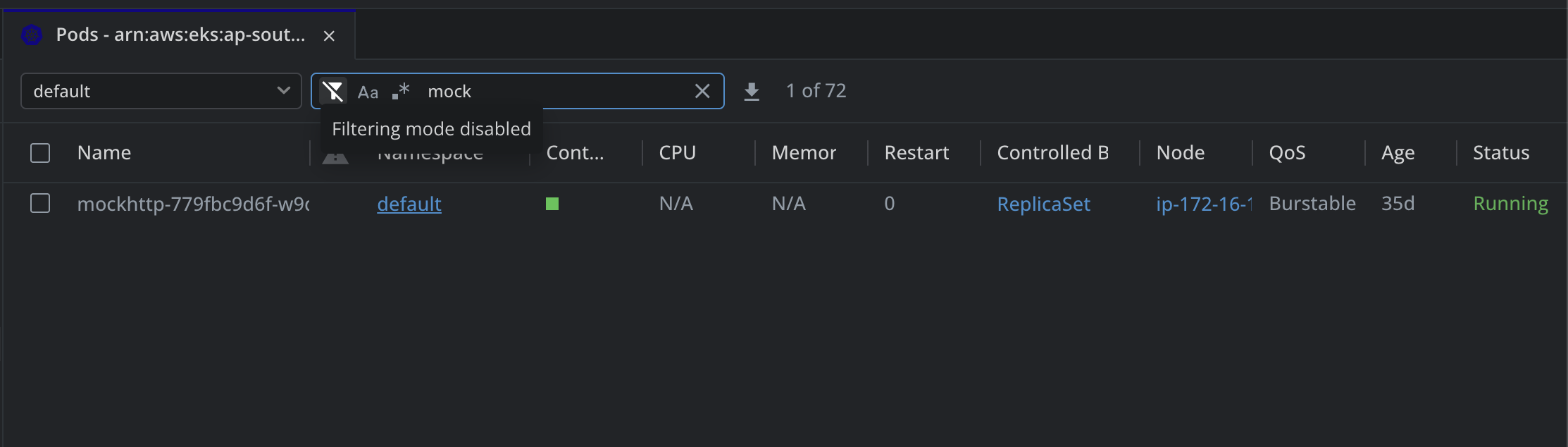 Filtering mode disabled: